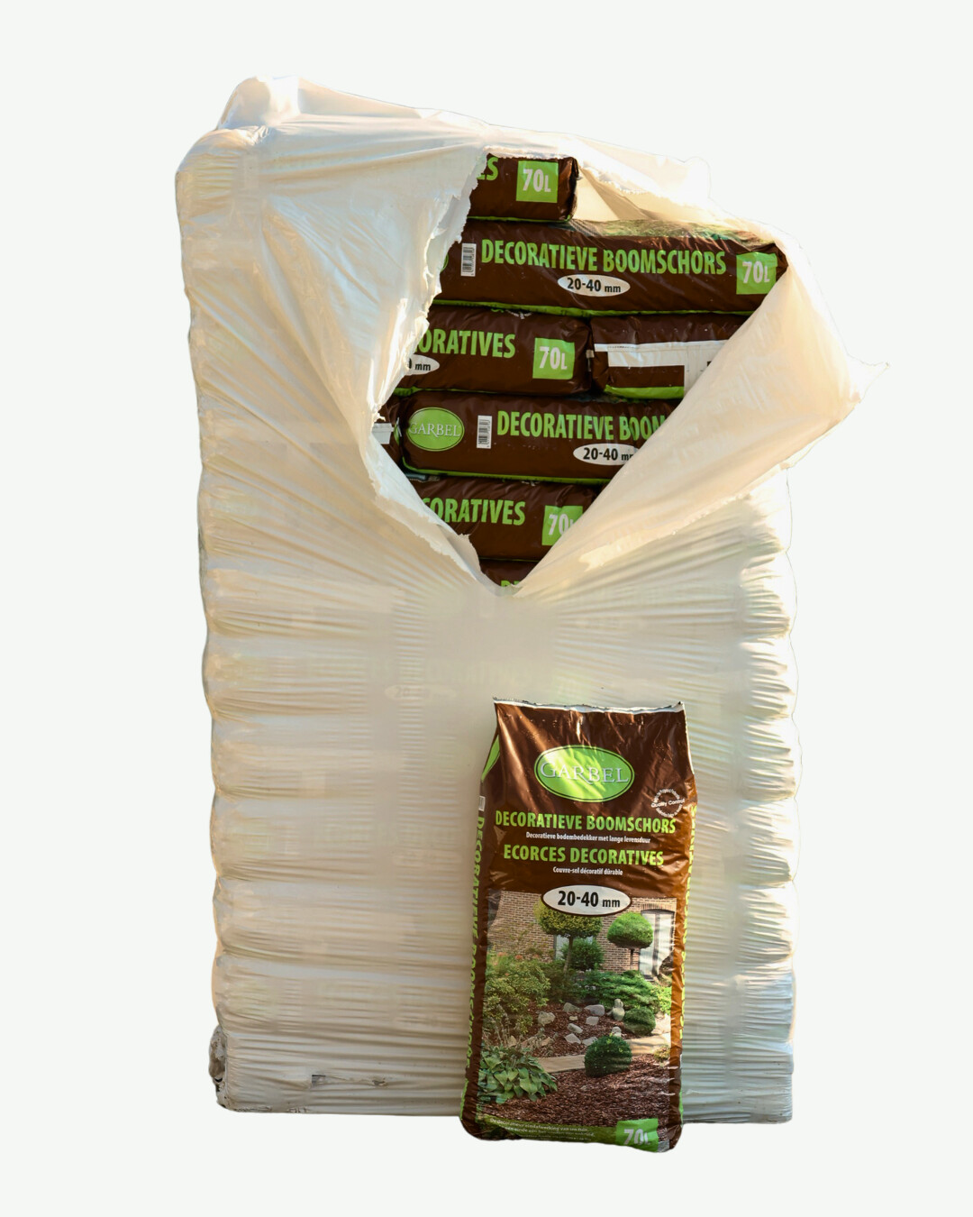 De levering blijft netjes verpakt waardoor de schors niet overal rondslingert